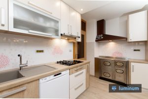 - Vgrajena steklena kuhinjska obloga z drevesi v Škofji Loki
