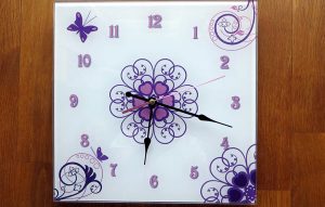 - Steklena ura Luminum z enakim motivom, kot ga ima stranka tudi na kuhinsjkem steklu